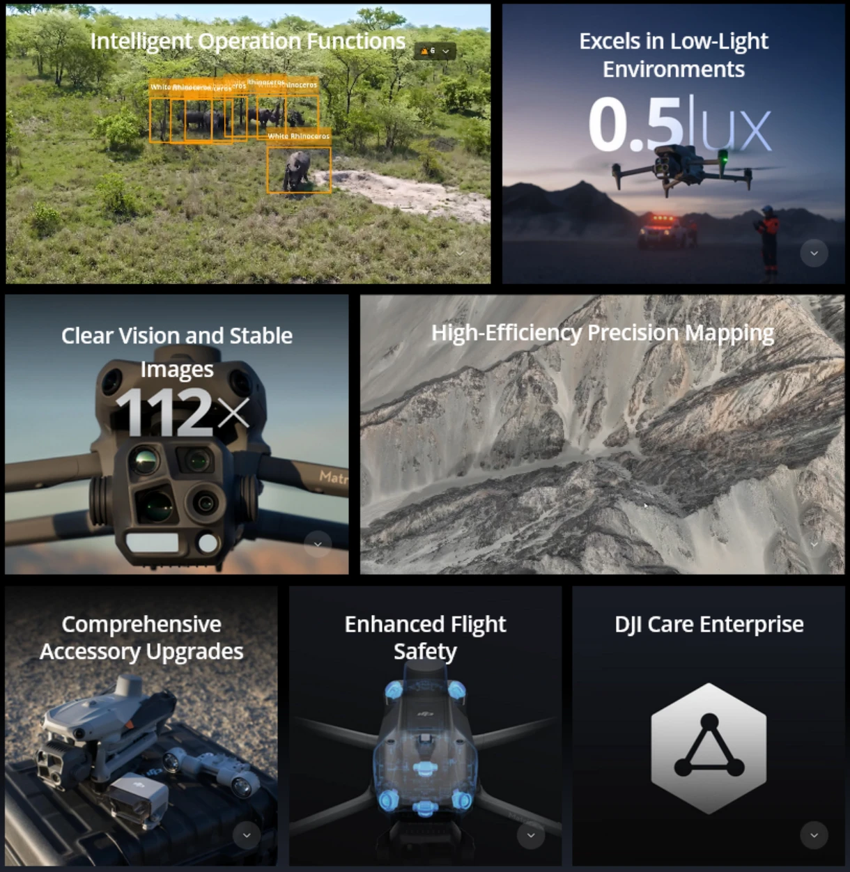 Predstavljamo DJI Matrice 4 seriju, novu kompaktnu i inteligentnu vodeću seriju dronova s više senzora za poslovne industrije. Serija uključuje Matrice 4T i Matrice 4E, svaki opremljen naprednim značajkama poput pametnog otkrivanja i mjerenja s laserskim daljinomjerom. Letačke operacije sada su sigurnije, pouzdanije i pokreću ih umjetna inteligencija, sa značajno poboljšanim mogućnostima očitavanja. Dodatna oprema za seriju Matrice 4 također je značajno nadograđena. Matrice 4T prikladan je za širok raspon industrija, uključujući elektroenergetsku industriju, hitne intervencije, javnu sigurnost i očuvanje šuma. Matrice 4E dizajniran je za geodetske primjene poput geodetskih istraživanja i mapiranja, građevinarstva i rudarstva. Sada počinje novo doba u inteligentnim zračnim operacijama.