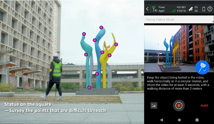 S Kolidinom naprednom tehnologijom fotogrametrije, korisnik K50 može lako dobiti koordinate za stotine točaka u roku od nekoliko minuta, koristeći prednju kameru za snimanje videa ili fotografija.